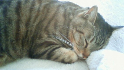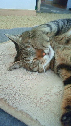 ぽっかぽかに暖かい、我が家のリビングで爆睡中で~~す。